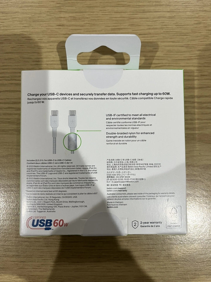 Belkin USB C to USB C fast charger cable, USB type C 2 pack, 1 metre Cable