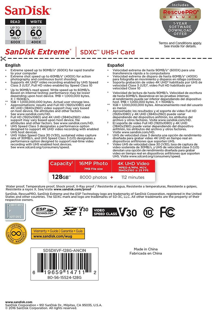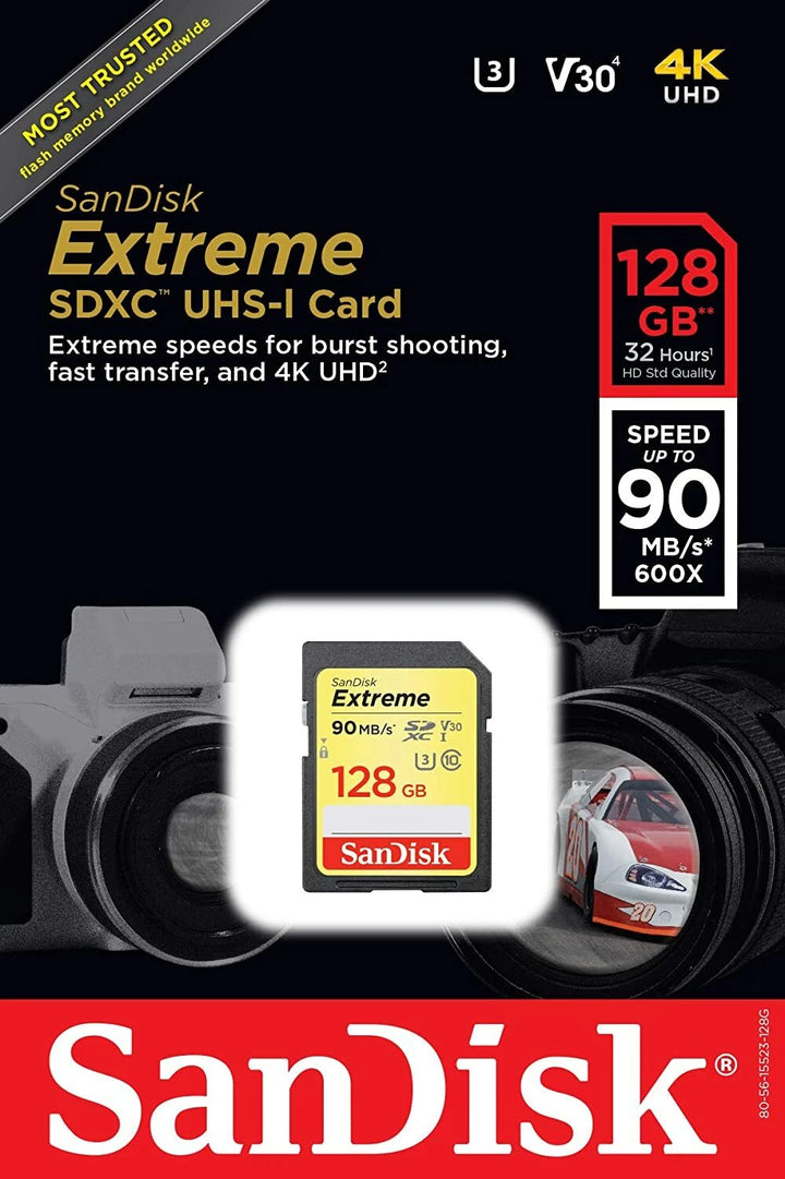 SanDisk 128GB Extreme V30 SD Card (SDXC) UHS-I U3 - 90MB/s